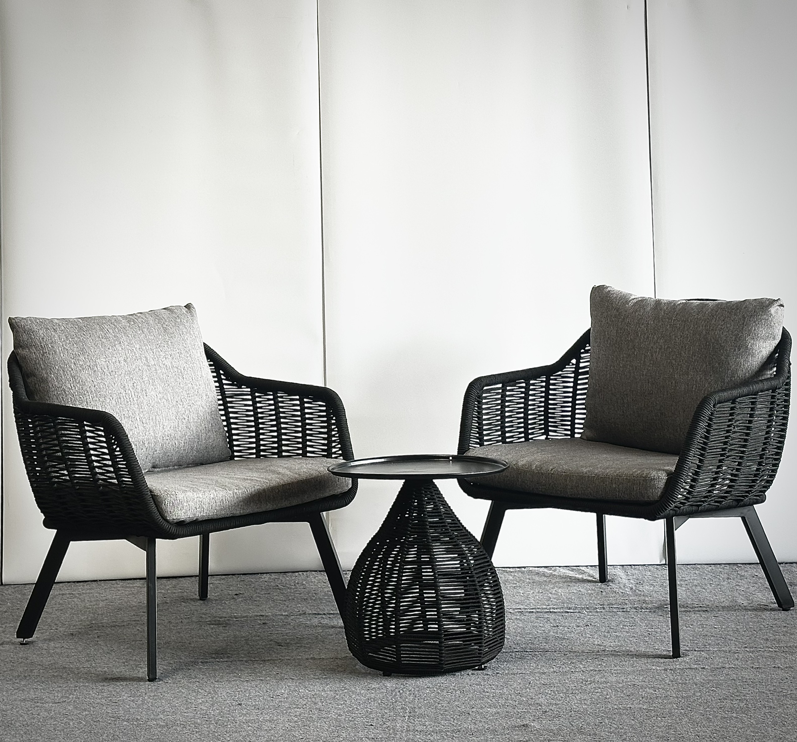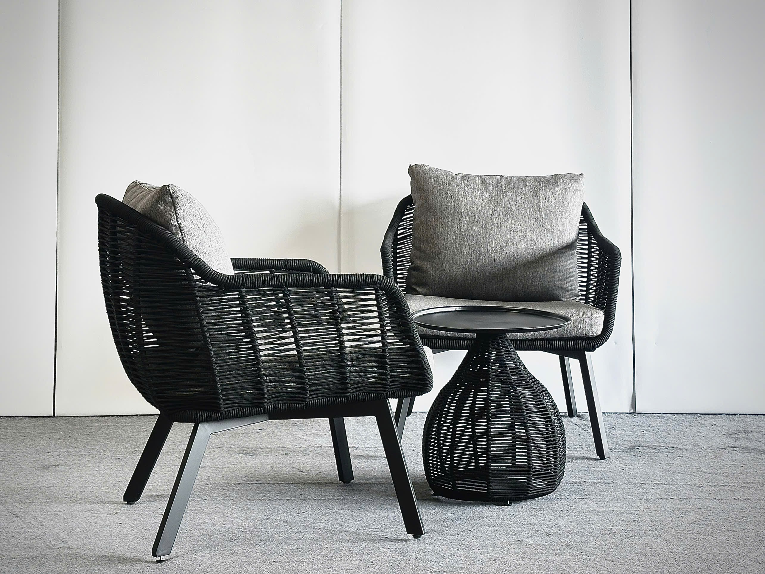 - Kích thước: 2x Ghế: W71xD75xH82 cm - 1x Bàn: Dia43xH45 cm, nệm dày 8cm