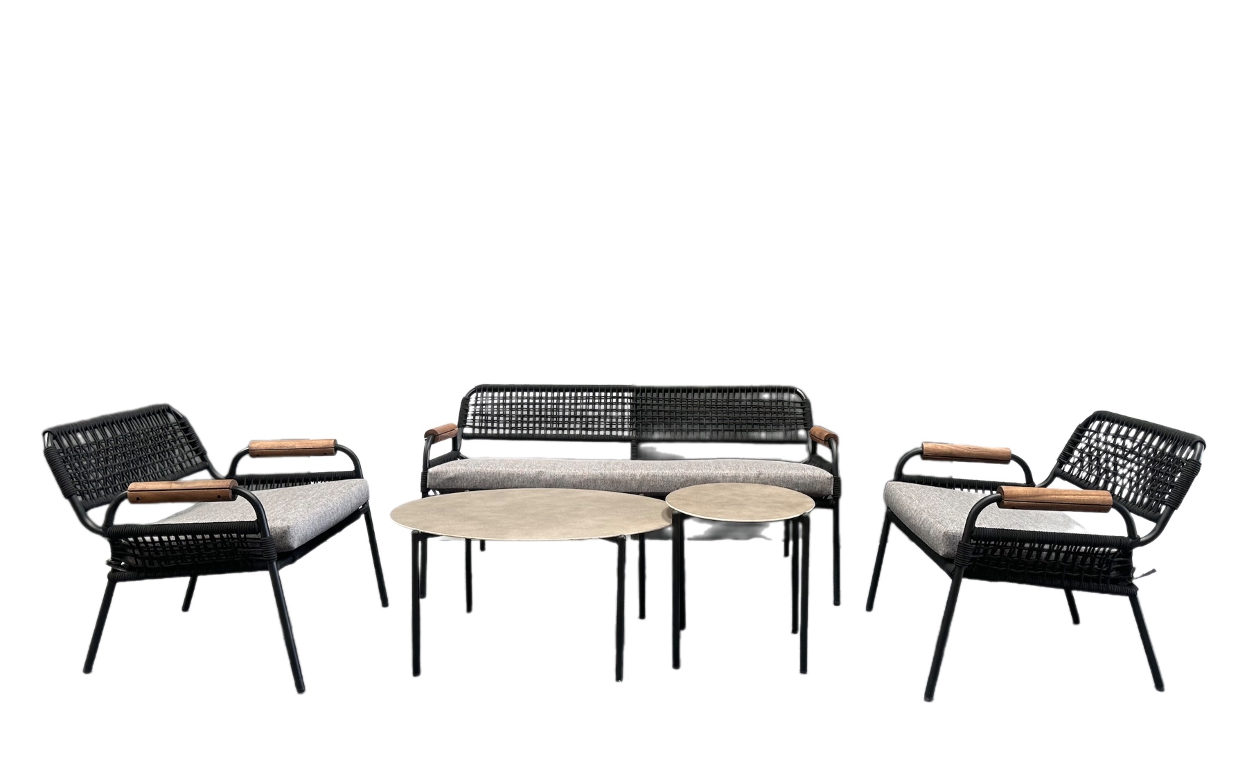 - Kích thước: 2x Chair: W72xD68xH63 cm, 1x Bench: W135xD68xH63 cm, 1x Small Table: Oval L54xW44xH40 cm, 1x Big Table: Oval L80xW70xH36 cm, nệm dày 8cm