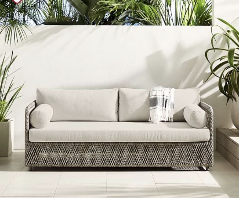 Vật liệu: Khung sắt sơn tĩnh điện, dây nhựa giả mây, vải polyester trượt nước